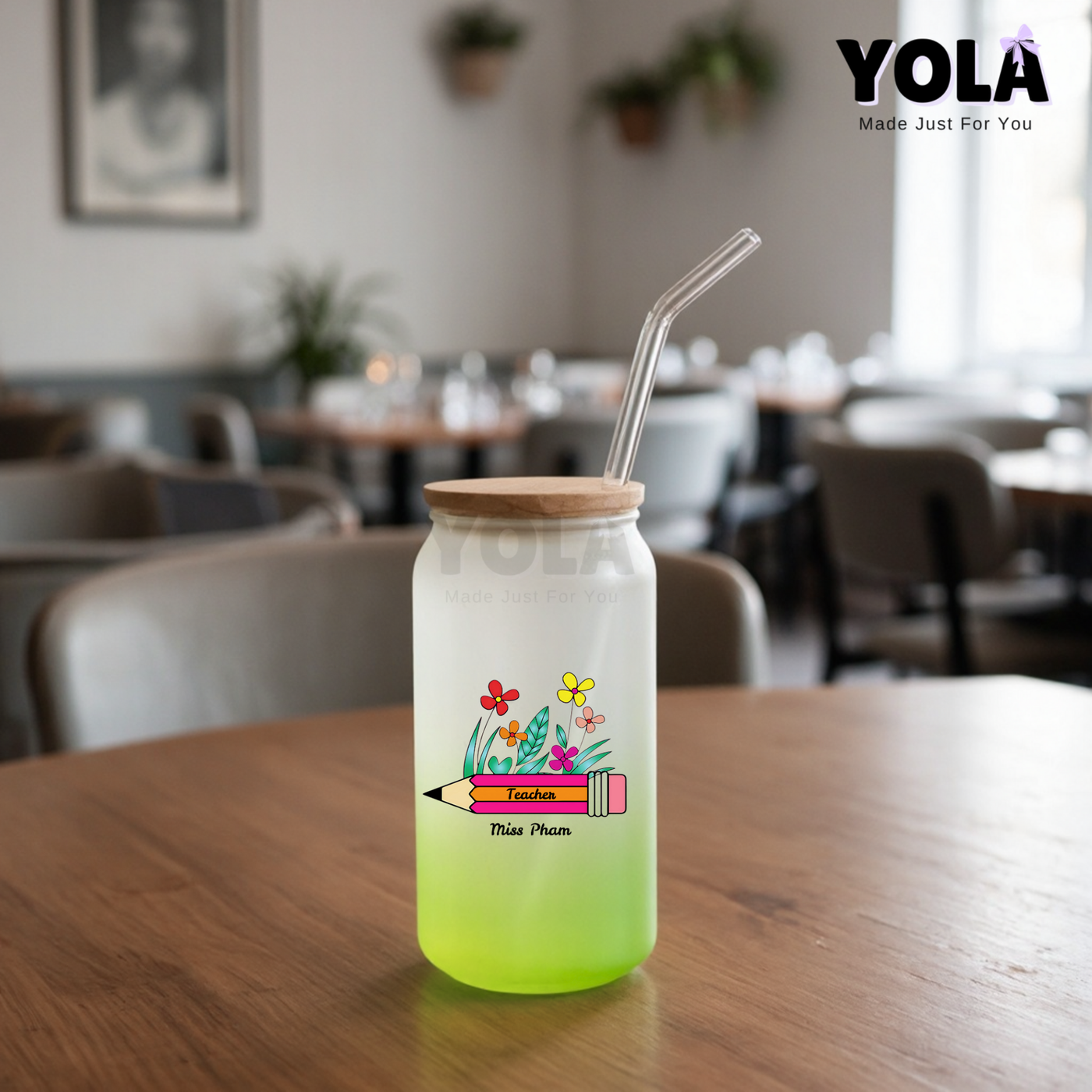 Frosted Glass can- Pencil & Ribbon Design - Frosted